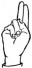 На ћирилици написано ЛИДИЈА КЛЕМЕНОВИЋ састоји се из 16 слова [?]. Исписано ћириличном једноручном азбуком за глувонеме: